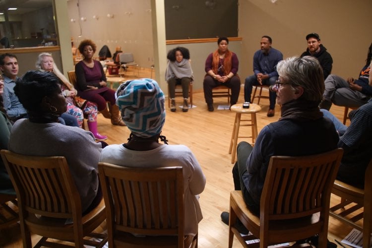 The Culture Hub has also engaged in projects like Hands Across the Hills, spending multiple immersive weekends in dialogue with voters in rural Western Massachusetts since the 2016 election. We use our famous “story circle” method to work to eliminate the media screen that divides us as red versus blue — just one of many programs by which the Culture Hub empowers community members and develops meaningful tools of cultural exchange.