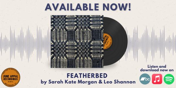 We are also happy to share that Featherbed, the collaborative album from Sarah Kate Morgan & Leo Shannon, is out now! This 7-song album covers an incredible range of old-time fiddler and dulcimer tunes. Featherbed is available for streaming just about anywhere you might stream music. You can purchase the digital album or CD on our Bandcamp page, and orders are shipping now. We were thrilled to see Featherbed top the bluegrass charts on Bandcamp on release day, and to find the audience we know this album deserves.