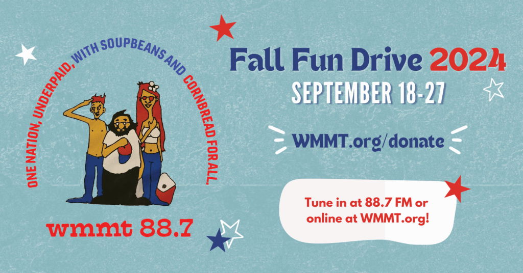 Also don’t forget that our WMMT Fall FUN Drive is underway! Let’s all take a little time to celebrate and honor home-grown, community-supported radio from September 18-27.